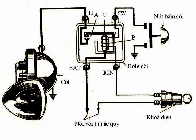 Sơ đồ mạch điện còi trên xe nâng hàng