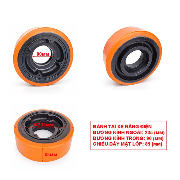 - Tên sản phẩm: Bánh PU xe nâng 235×85-90