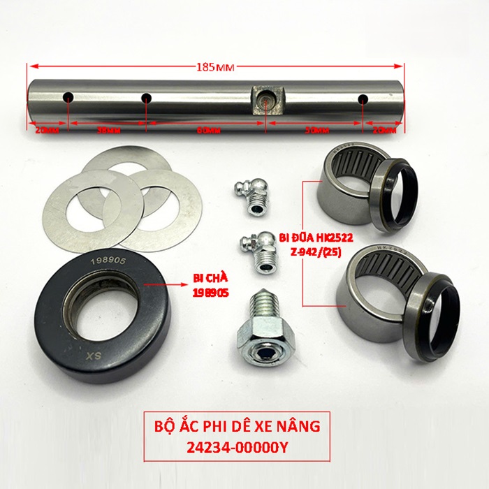 - Trục ắc/ King Pin: 24234-32181. Chiều dài 185mm, đường kính 25mm.