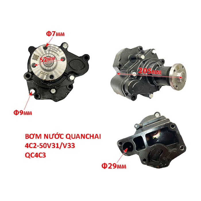 Bơm nước động cơ Quanchai 4C2-50V31/V33 và động cơ Quanchai 4C3 kim phun dầu điện tử.