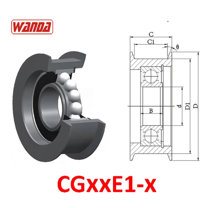 CGxxE1-x Bạc đạn xích lõi 1 hàng bi lăn, nút chặn đôi