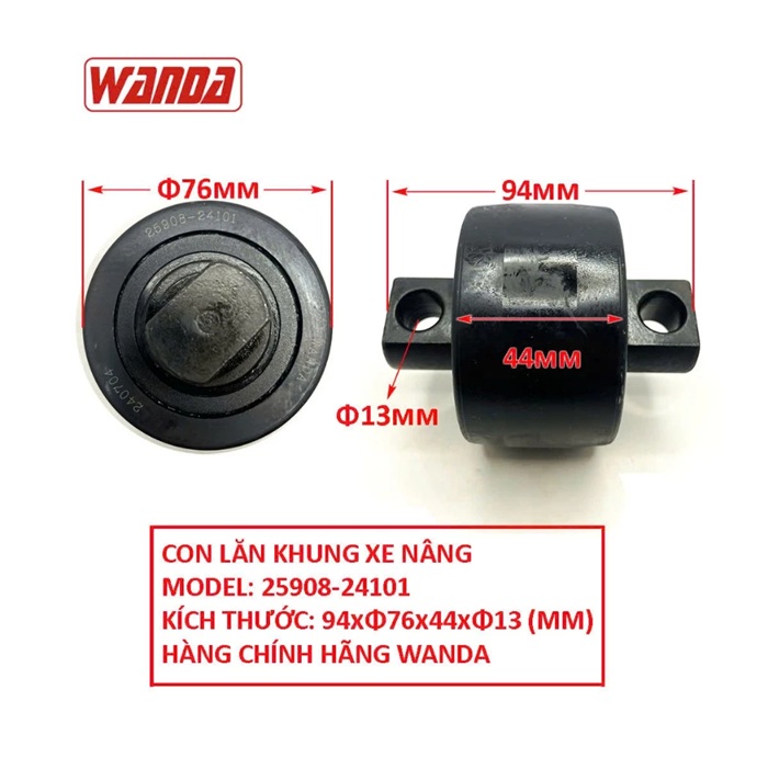 Thiết kế con lăn xe nâng: dày dặn, bề mặt ngoài được gia công bằng vật liệu đặc biệt, tránh mài mòn khung.