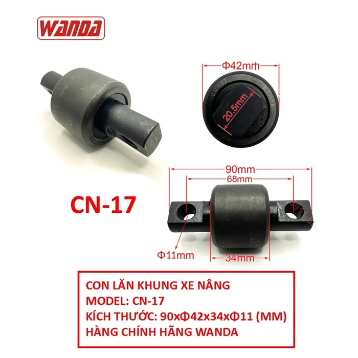Con lăn khung nâng CN-17 là chi tiết không thể thiếu trên hệ thống thủy lực của 1 chiếc xe nâng. Được sử dụng phổ biến trên các hãng xe nâng như: Hangcha, Lonking, JAC, HELI, TCM…