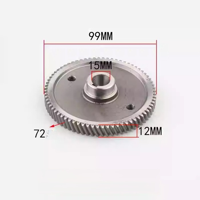 Đĩa bánh răng có 72 răng, đường kính gần 100mm, với 2 tùy chọn lỗ trục 15mm và 17mm (có then), phù hợp nhiều dòng xe nâng tay điện, xe nâng bán tự động, xe nâng điện mini.