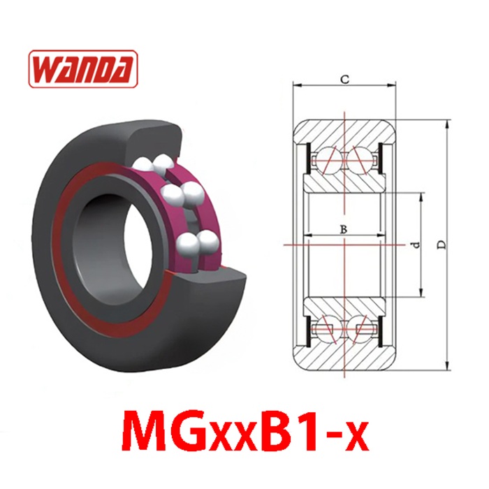 MGxxB1-x Bạc đạn khung nâng hình trụ thẳng, lõi 2 hàng bi lăn.