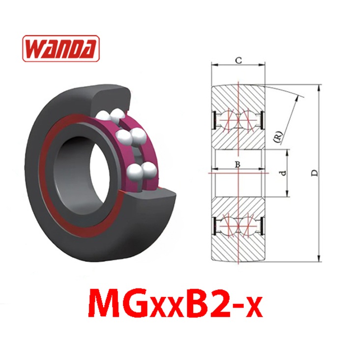 MGxxB2-x Bạc đạn khung nâng mặt ngoài vòng cung, lõi 2 hàng bi lăn.