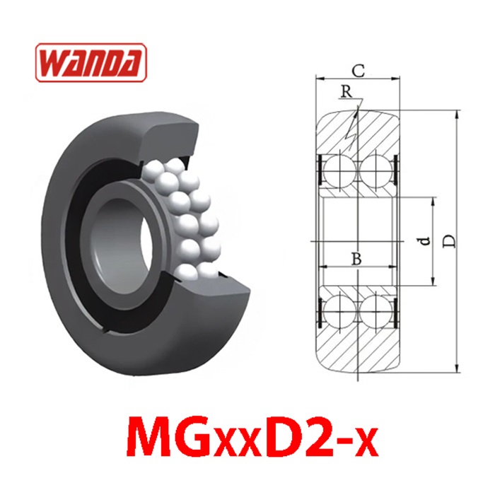 MGxxD2-x Bạc đạn khung nâng hình trụ bo tròn cạnh, lõi 2 hàng bi lăn.