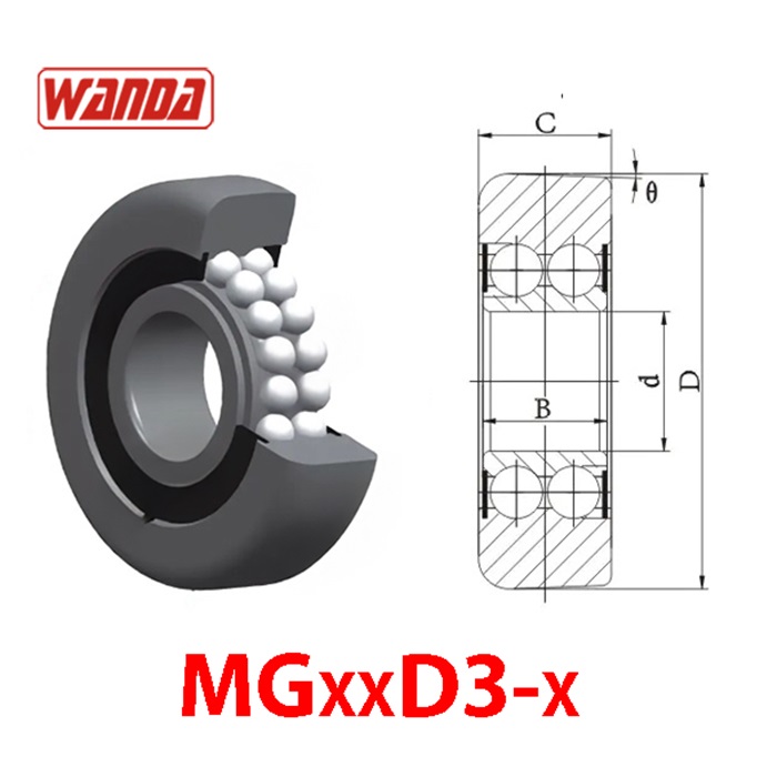 MGxxD3-x Bạc đạn khung nâng hình trụ vát cạnh, lõi 2 hàng bi lăn.