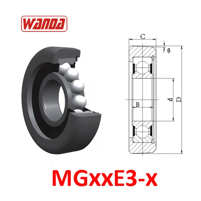 MGxxE3-x Bạc đạn khung nâng hình trụ (vát nhẹ), lõi 1 hàng bi lăn.