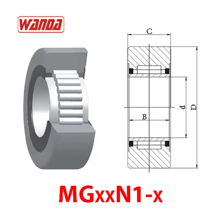MGxxN1-x Bạc đạn khung nâng mặt ngoài vát cạnh chữ R, lõi 1 hàng bi lăn.