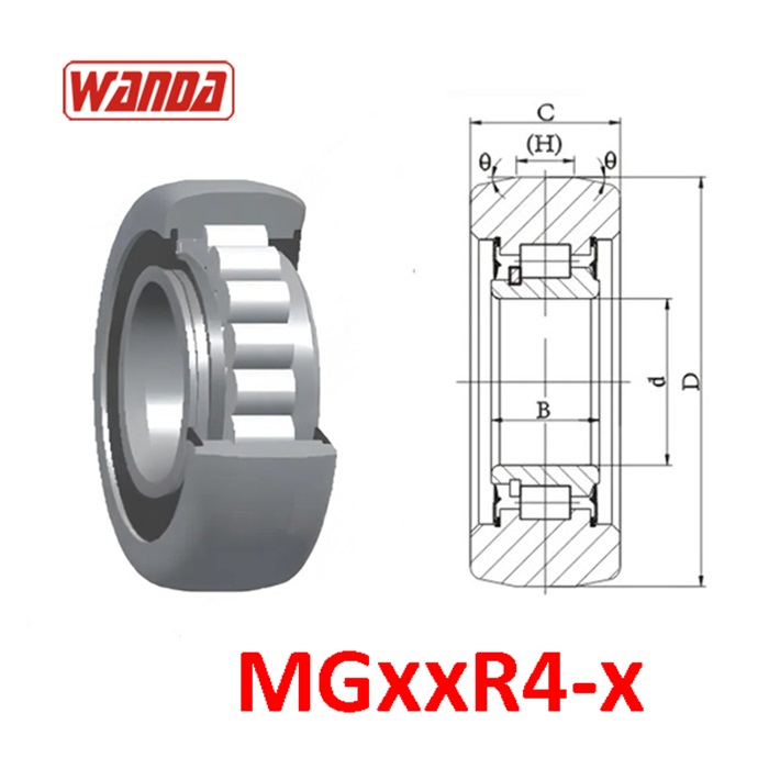 MGxxR4-x Bạc đạn khung nâng hình trụ vát đôi, lõi 1 hàng bi đũa.