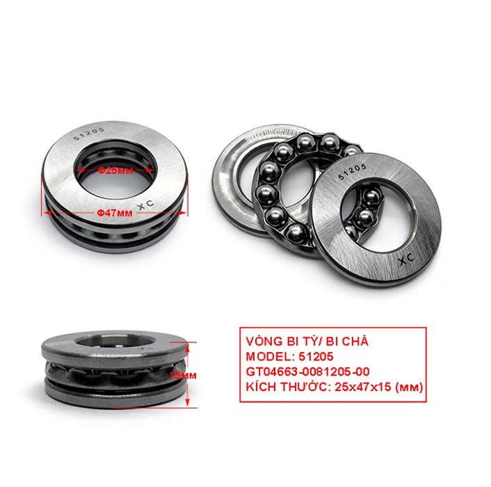 Vòng bi chà GT04663-0081205-00 (81205, 51205) (25x47x15)mm