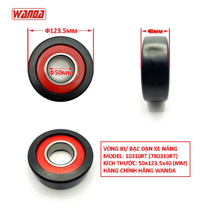 Vòng bi xe nâng 10310RT (ký hiệu khác 780310RT) là dòng vòng bi tỳ khung nâng do hãng Wanda sản xuất, mã hãng MG50A2–5T. Đây là loại vòng bi chuyên dụng cho các dòng xe nâng tải trọng lớn, đảm bảo độ bền, độ ổn định và khả năng chịu tải cao trong môi trường làm việc nặng.