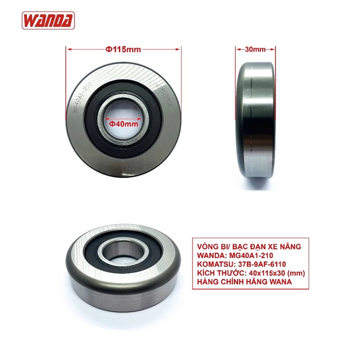 Vòng bi khung nâng 37B-9AF-6110, 37B-9AF-6120. Kích thước: 40*115*30 (mm). Sử dụng trên xe nâng Komatsu 3 tấn FD30-17.