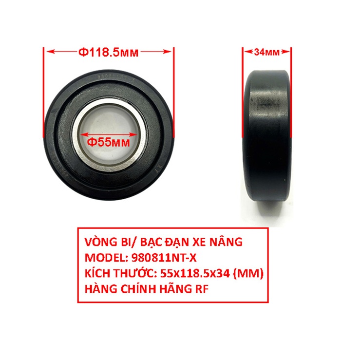 Bạc đạn xe nâng 980811NT-X là mẫu bạc đạn khung nâng chất lượng cao do hãng RF sản xuất, chuyên dùng cho các dòng xe nâng Trung Quốc và xe nâng điện hiện nay. Sản phẩm được thiết kế với độ bền cao, chịu tải lớn và vận hành ổn định trong môi trường làm việc liên tục.