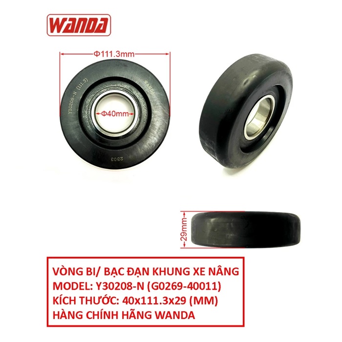 Vòng bi khung xe nâng Y30208-N (G0269-40011) được sử dụng trên các mẫu xe nâng chạy dầu, điện cỡ nhỏ từ 1 tấn đến 1.8 tấn của Heli, Hangcha, TCM, Baoli, Toyota…