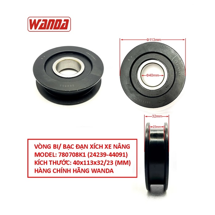 Kích thước cơ bản trên mẫu Puly xích xe nâng 780708K1 (24239-44091)