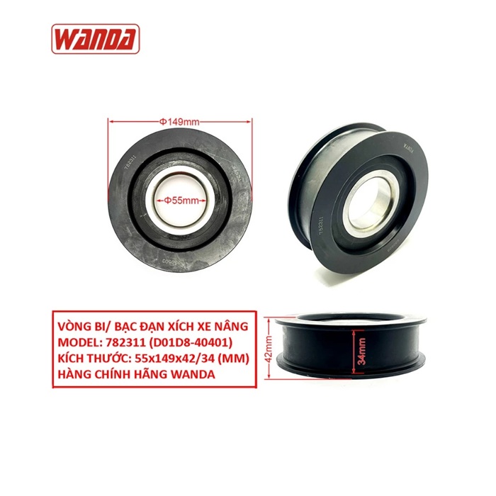 Kích thước tổng thể trên vòng bi xích 782311 (D01D8-40401)