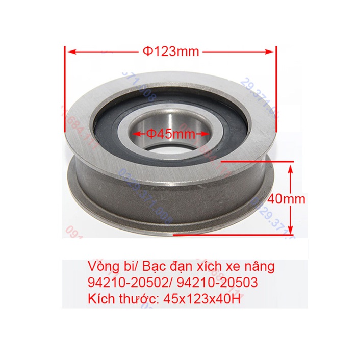 Kích thước Bạc đạn xích xe nâng 94210-20502, 94210-20503, 94310-09100, 94310-02403 (45x123x40H)