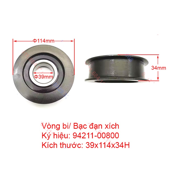 Kích thước Puly xích xe nâng 94211-00800 (39x114x34H)