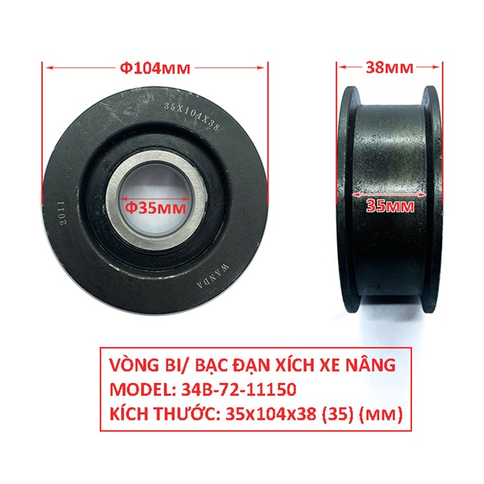 Nếu bạn đang cần tìm Vòng bi xích Komatsu 35x104x38H đúng mã 34B-72-11150, đúng thông số kỹ thuật và phù hợp cho xe nâng Komatsu 2 tấn đến 2.5 tấn, đây là lựa chọn phù hợp cho nhu cầu thay thế và sửa chữa.
